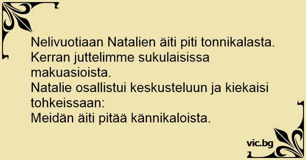 Nelivuotiaan Natalien äiti piti tonnikalasta.