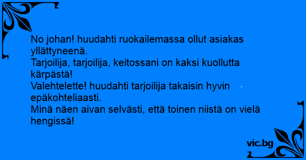 No johan! huudahti ruokailemassa ollut asiakas yllättyneenä.