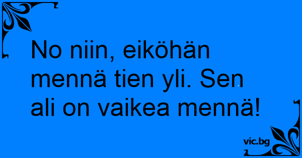 No niin, eiköhän mennä tien yli. Sen ali on vaikea mennä!