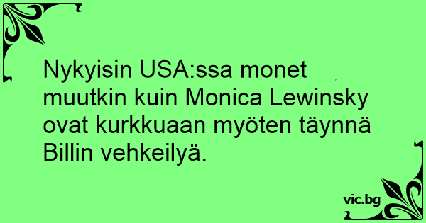 Nykyisin USA:ssa monet muutkin kuin Monica Lewinsky ovat kurkkuaan myöten täynnä Billin vehkeilyä.