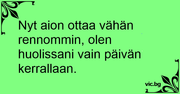 Nyt aion ottaa vähän rennommin, olen huolissani vain päivän kerrallaan.