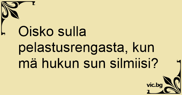 Oisko sulla pelastusrengasta, kun mä hukun sun silmiisi?