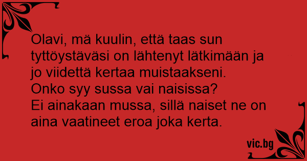 Olavi, mä kuulin, että taas sun tyttöystäväsi on lähtenyt lätkimään ja jo viidettä kertaa muistaakseni.