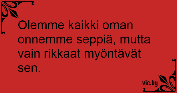 Olemme kaikki oman onnemme seppiä, mutta vain rikkaat myöntävät sen.