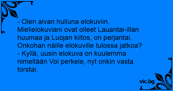 - Kyllä, uusin elokuva on kuulemma nimeltään Voi реrкеlе, nyt onkin vasta torstai.