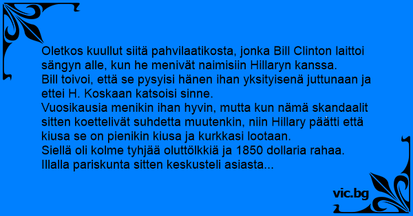Oletkos kuullut siitä pahvilaatikosta, jonka Bill Clinton laittoi sängyn alle, kun he menivät naimisiin Hillaryn kanssa.