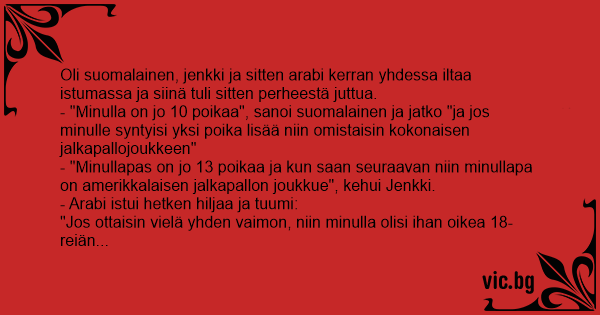 - "Minulla on jo 10 poikaa", sanoi suomalainen ja jatko "ja jos minulle syntyisi yksi poika lisää niin omistaisin kokonaisen jalkapallojoukkeen"