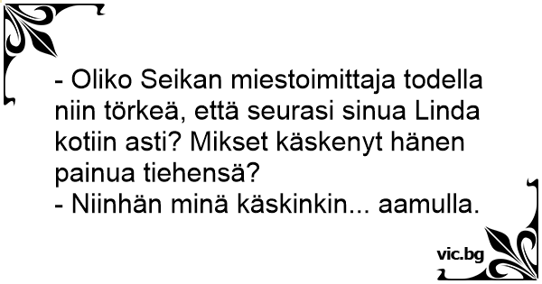 - Oliko Seikan miestoimittaja todella niin törkeä, että seurasi sinua Linda kotiin asti? Mikset käskenyt hänen painua tiehensä?