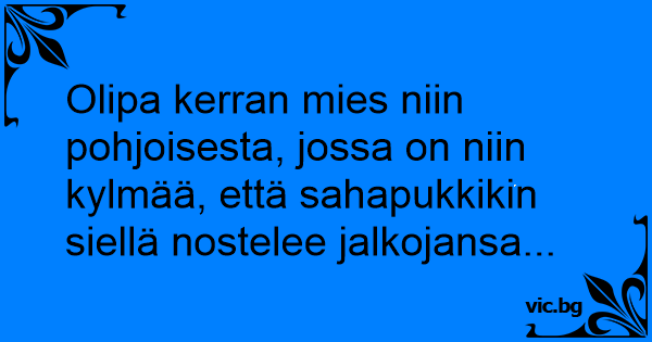 Olipa kerran mies niin pohjoisesta, jossa on niin kylmää, että sahapukkikin siellä nostelee jalkojansa...