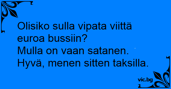 Olisiko sulla vipata viittä...