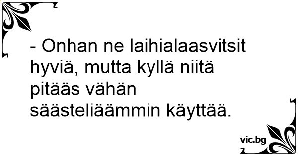 - Onhan ne laihialaasvitsit hyviä, mutta kyllä niitä pitääs vähän säästeliäämmin käyttää.