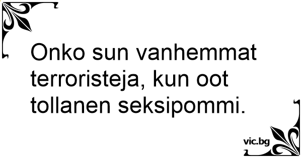 Onko sun vanhemmat terroristeja, kun oot tollanen seksipommi.