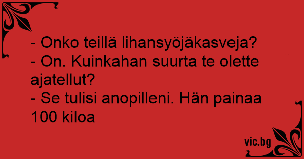 - Se tulisi anopilleni. Hän painaa 100 kiloa