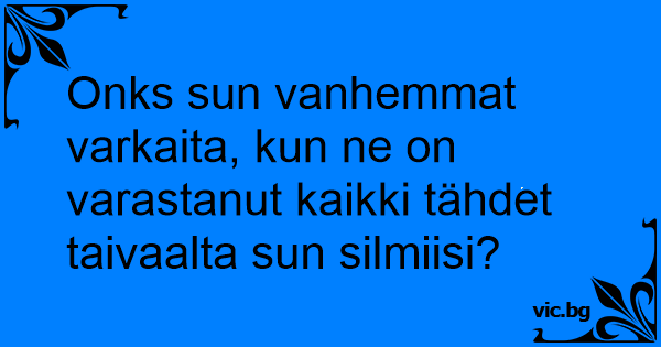 Onks sun vanhemmat varkaita, kun ne on varastanut kaikki tähdet taivaalta sun silmiisi?