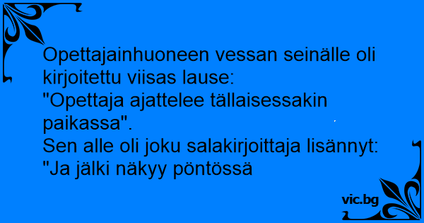 Opettajainhuoneen vessan seinälle oli kirjoitettu viisas lause: