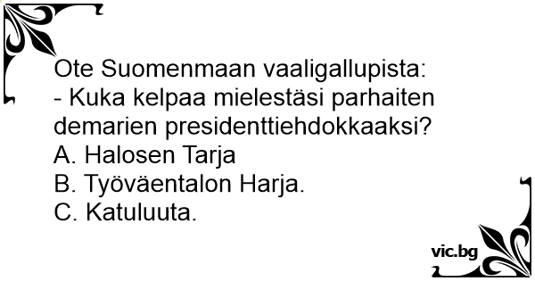 - Kuka kelpaa mielestäsi parhaiten demarien presidenttiehdokkaaksi?