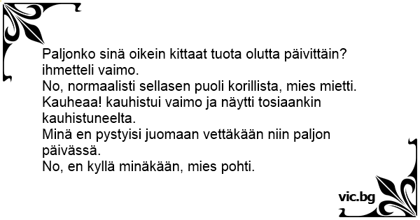 Paljonko sinä oikein kittaat tuota olutta päivittäin? ihmetteli vaimo.