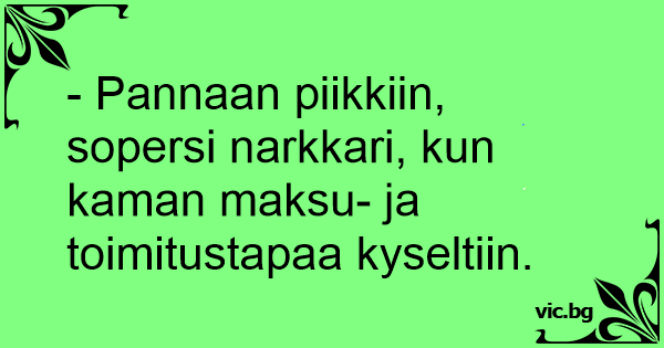 - Pannaan piikkiin, sopersi narkkari, kun kaman maksu- ja toimitustapaa kyseltiin.