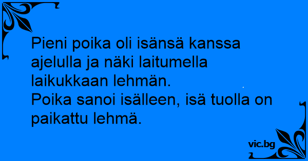 Poika sanoi isälleen, isä tuolla on paikattu lehmä.