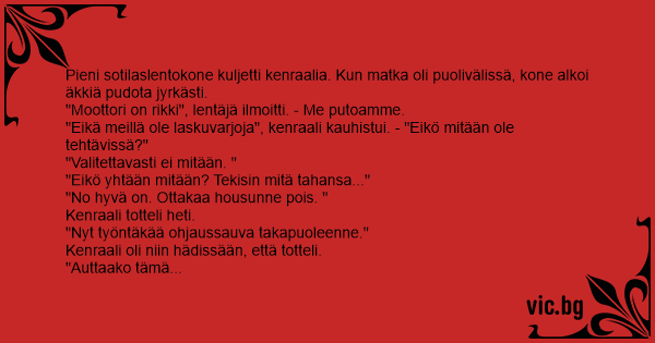 Pieni sotilaslentokone kuljetti kenraalia. Kun matka oli puolivälissä, kone alkoi äkkiä pudota jyrkästi.