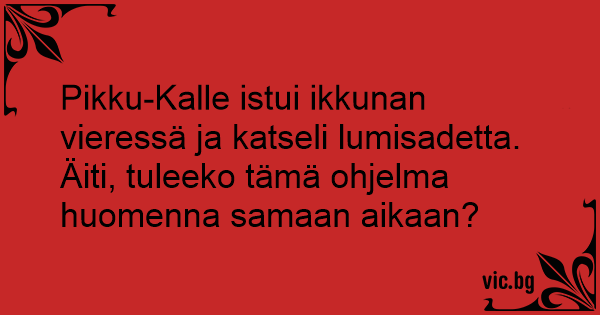Pikku-Kalle istui ikkunan vieressä ja katseli lumisadetta.