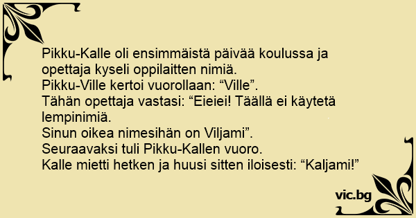 Tähän opettaja vastasi: “Eieiei! Täällä ei käytetä lempinimiä.