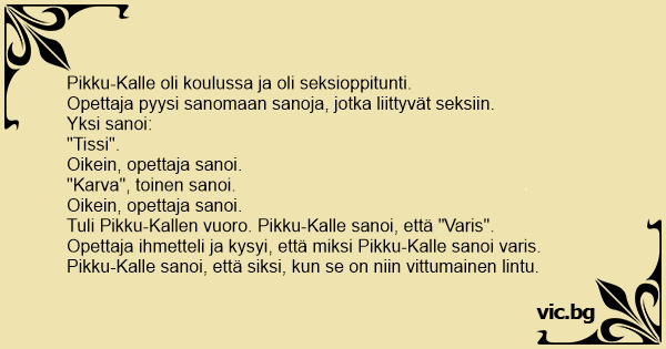 Pikku-Kalle oli koulussa ja oli seksioppitunti.