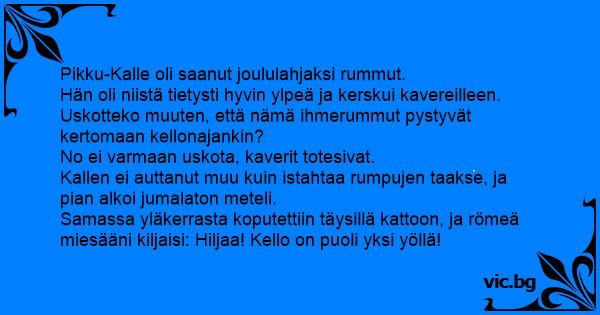 Pikku-Kalle oli saanut joululahjaksi rummut.