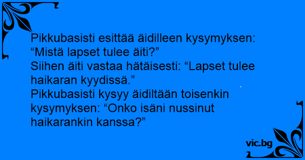 Pikkubasisti kysyy äidiltään toisenkin kysymyksen: “Onko isäni nussinut haikarankin kanssa?”