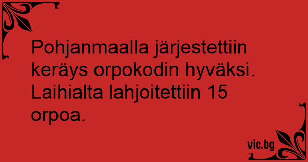 Laihialta lahjoitettiin 15 orpoa.