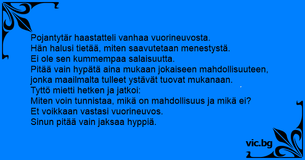 Sinun pitää vain jaksaa hyppiä.