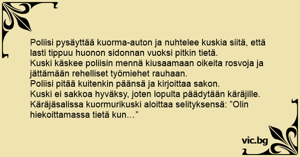 Polisen stoppade en lastbilschaufför och talade om för honom att lasten håller på att ramla ut för det är dåligt fastsatt.. Lastbilschauffören ber upprört poliserna: - ...jaga de riktiga bovarna och lämna hederliga arbetare i fred. Men poliserna gav sig inte och skrev ut böter....
