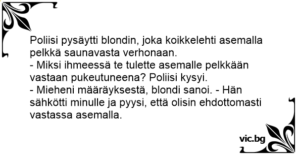 - Miksi ihmeessä te tulette asemalle pelkkään vastaan pukeutuneena? Poliisi kysyi.
