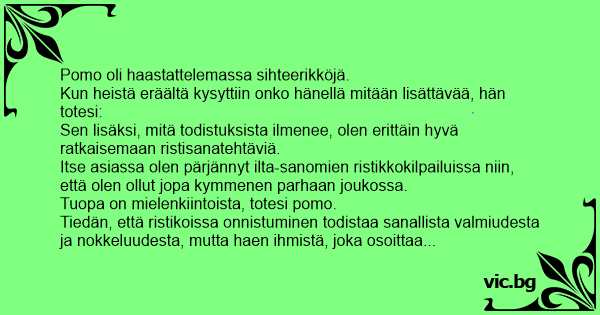 Itse asiassa olen pärjännyt ilta-sanomien ristikkokilpailuissa niin, että olen ollut jopa kymmenen parhaan joukossa.