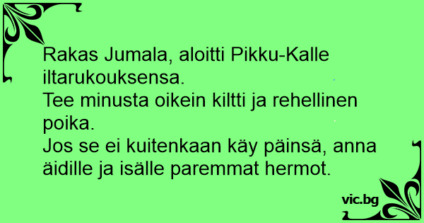 Rakas Jumala, aloitti Pikku-Kalle iltarukouksensa.