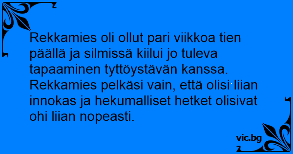 Rekkamies oli ollut pari viikkoa tien päällä ja silmissä kiilui jo tuleva tapaaminen tyttöystävän kanssa. Rekkamies pelkäsi vain, että olisi liian innokas ja hekumalliset hetket olisivat ohi liian nopeasti.