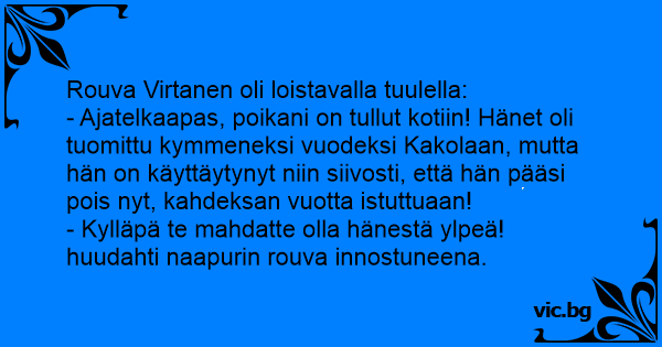 Rouva Virtanen oli loistavalla tuulella: