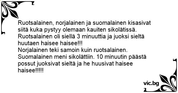 Suomalainen meni sikolättiin. 10 minuutin päästä possut juoksivat sieltä ja he huusivat haisee haisee!!!!!