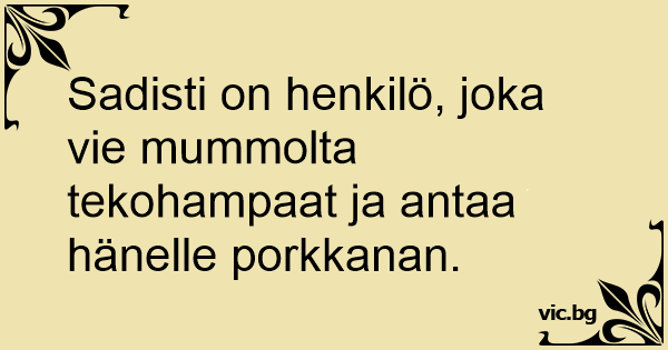 Sadisti on henkilö, joka vie mummolta tekohampaat ja antaa hänelle porkkanan.