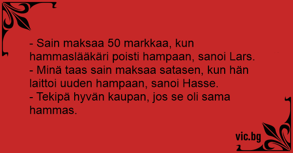 - Tekipä hyvän kaupan, jos se oli sama hammas.