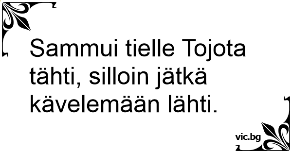 Sammui tielle Tojota tähti, silloin jätkä kävelemään lähti.