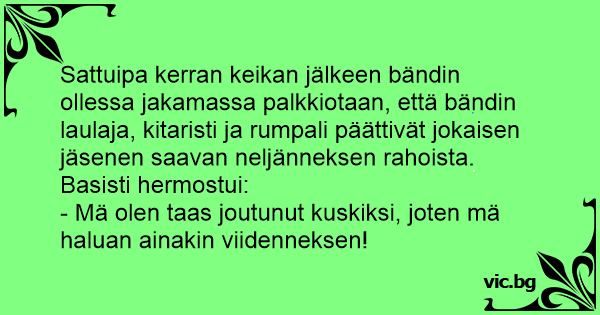 Sattuipa kerran keikan jälkeen bändin ollessa jakamassa palkkiotaan, että bändin laulaja, kitaristi ja rumpali päättivät jokaisen jäsenen saavan neljänneksen rahoista. Basisti hermostui: