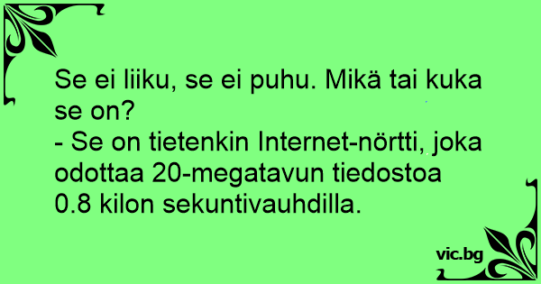 - Se on tietenkin Internet-nörtti, joka odottaa 20-megatavun tiedostoa 0.8 kilon sekuntivauhdilla.
