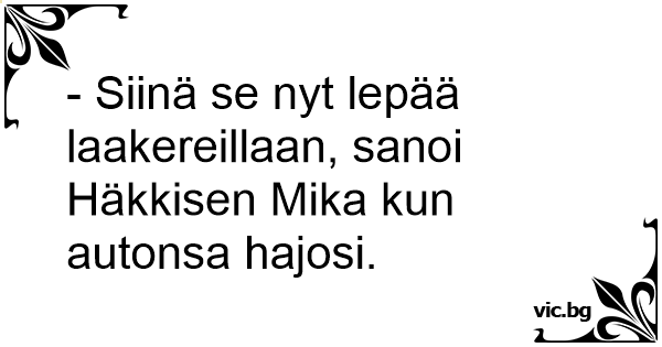 - Siinä se nyt lepää laakereillaan, sanoi Häkkisen Mika kun autonsa hajosi.