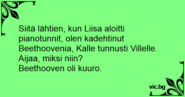 Siitä lähtien, kun Liisa aloitti pianotunnit, olen kadehtinut Beethoovenia, Kalle tunnusti Villelle.