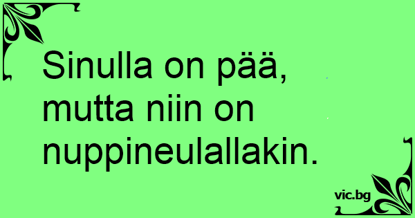 Sinulla on pää, mutta niin on nuppineulallakin.