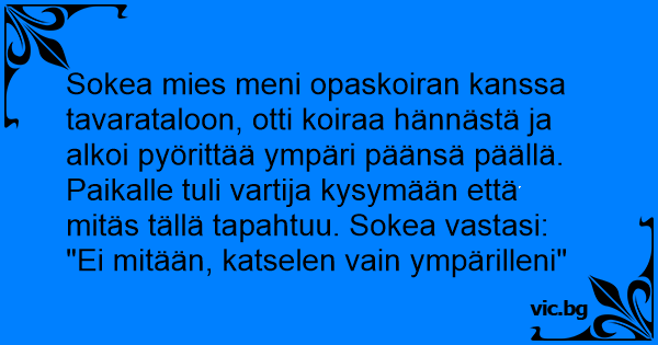 Sokea mies meni opaskoiran kanssa tavarataloon, otti koiraa hännästä ja alkoi pyörittää ympäri päänsä päällä.