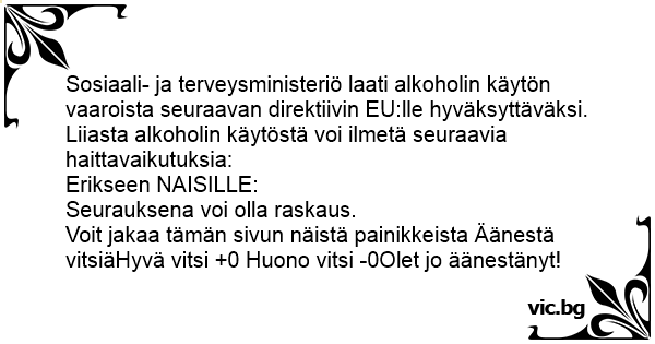 Sosiaali- ja terveysministeriö laati alkoholin käytön vaaroista seuraavan direktiivin EU:lle hyväksyttäväksi.