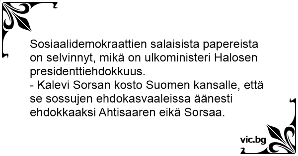 - Kalevi Sorsan kosto Suomen kansalle, että se sossujen ehdokasvaaleissa äänesti ehdokkaaksi Ahtisaaren eikä Sorsaa.