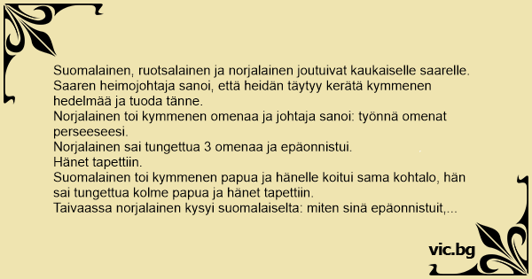 Norjalainen toi kymmenen omenaa ja johtaja sanoi: työnnä omenat perseeseesi.